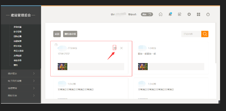 1.“后台管理”-“预约”-“评论管理”,点击进入后,可以选择对评论进行删除和隐藏,操作之后,在前台页面中则不会显示该评论的内容,如图所示: